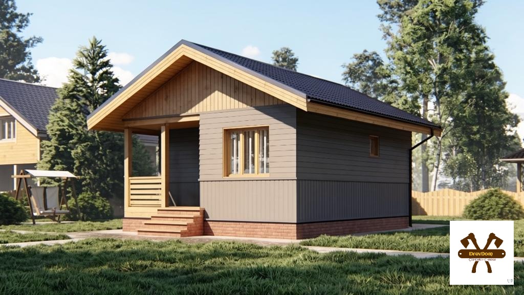 При наличии подъема стен второго этажа, выполнены из бруса. На мансардном этаже фронтоны - имитация бруса;
