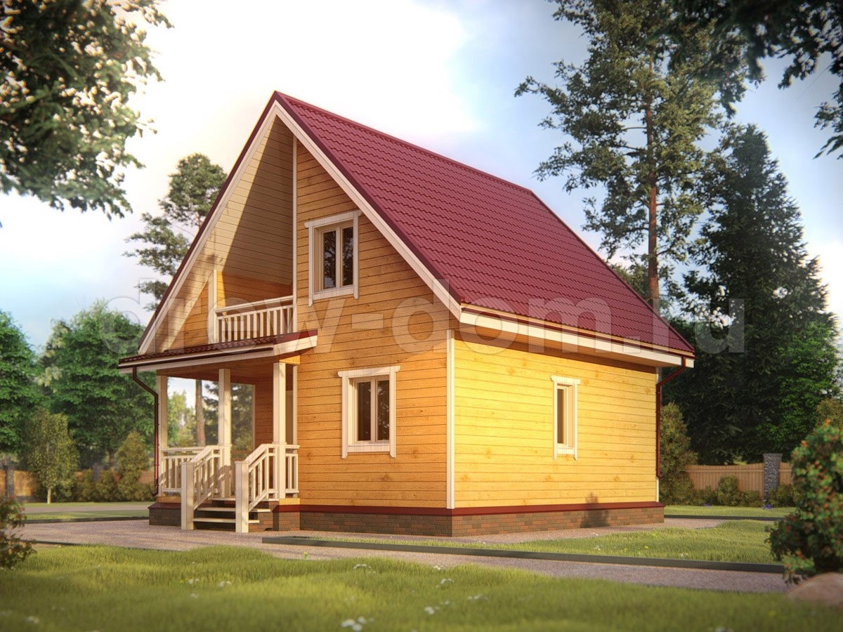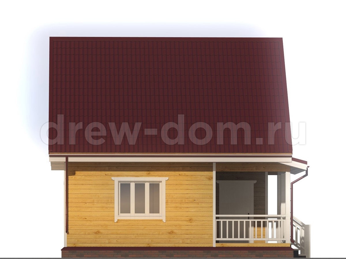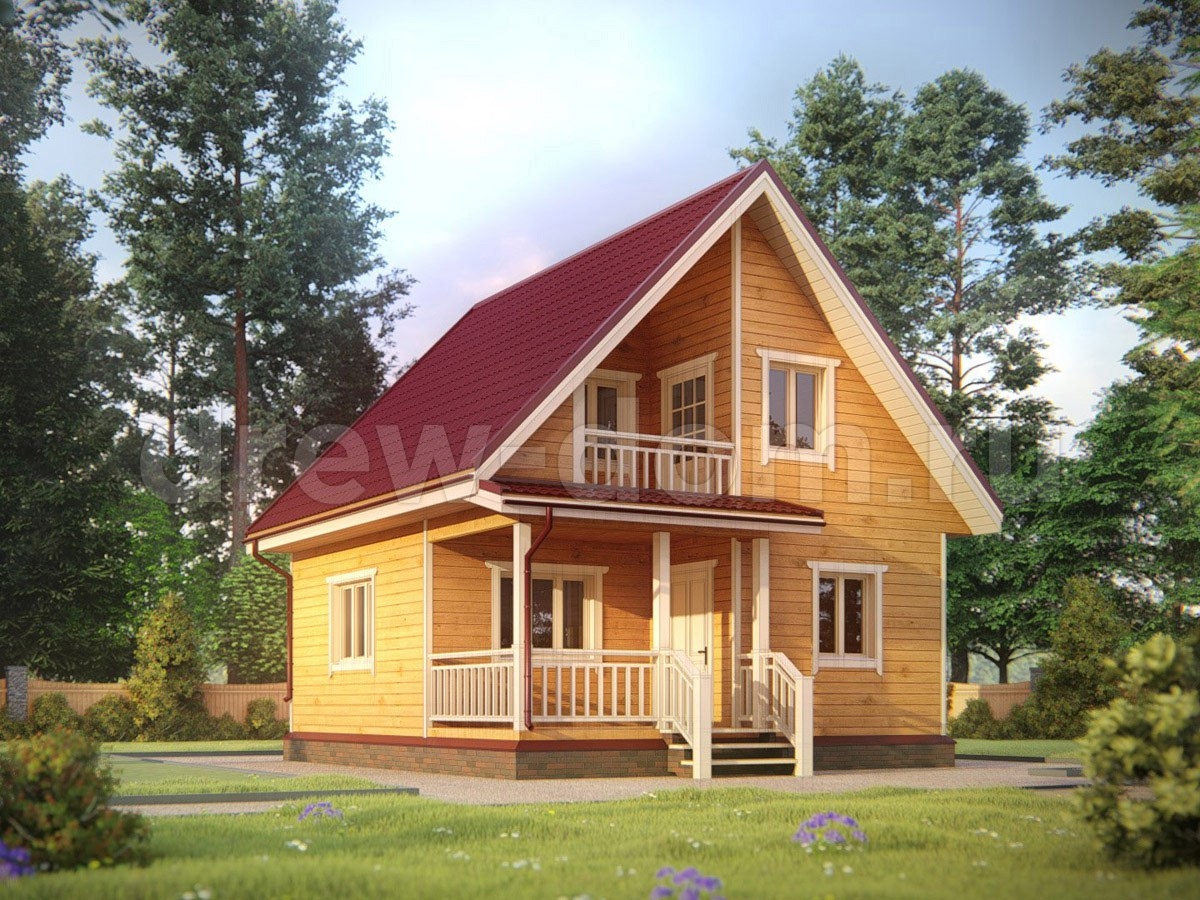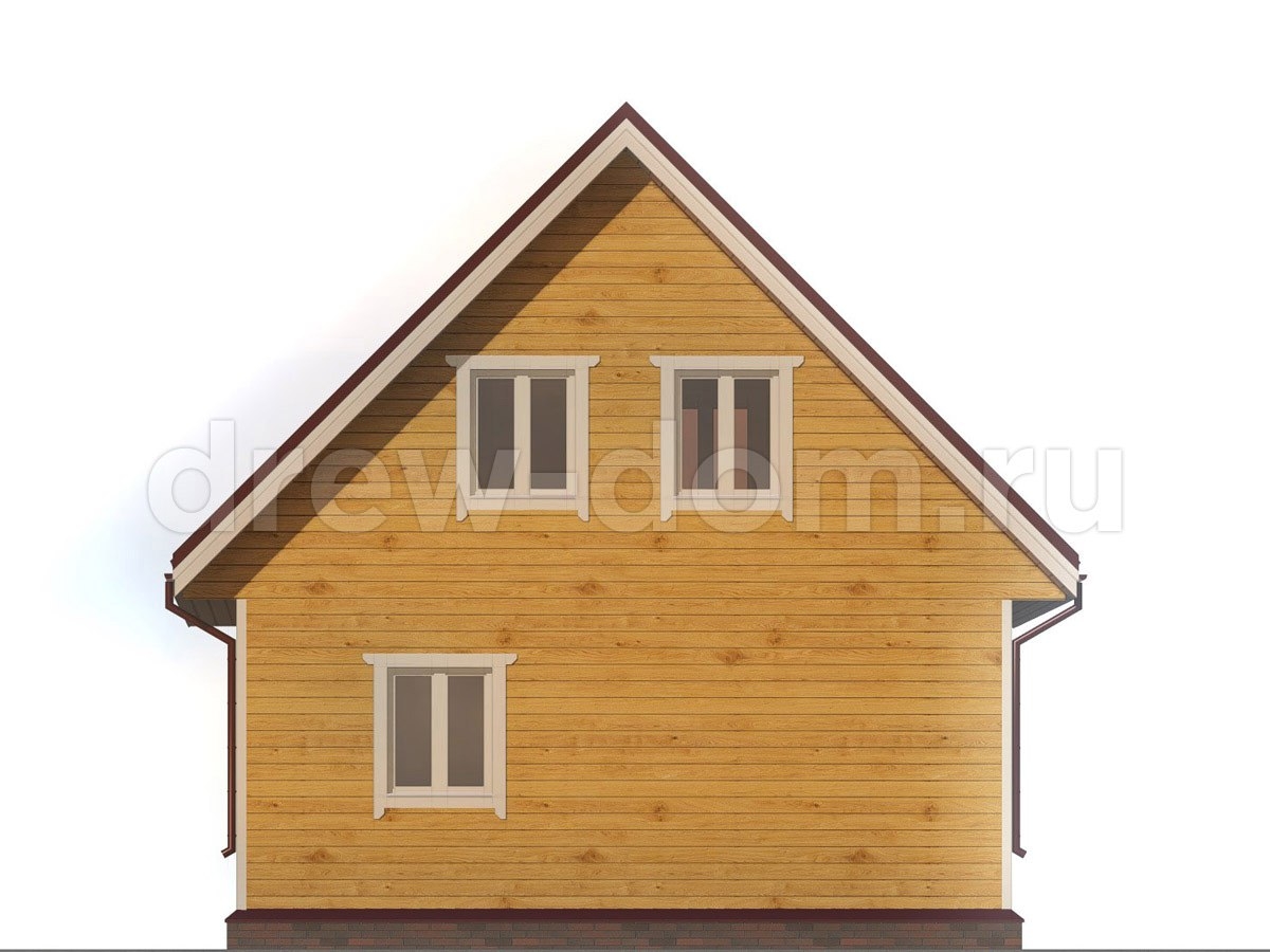 При наличии подъема стен второго этажа, выполнены из бруса. На мансардном этаже фронтоны - имитация бруса;