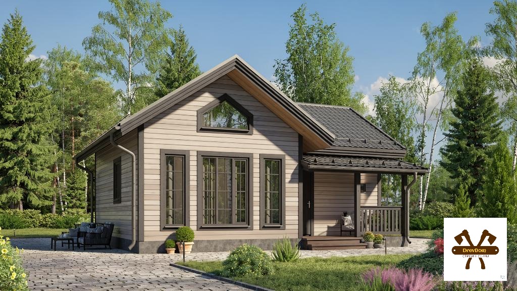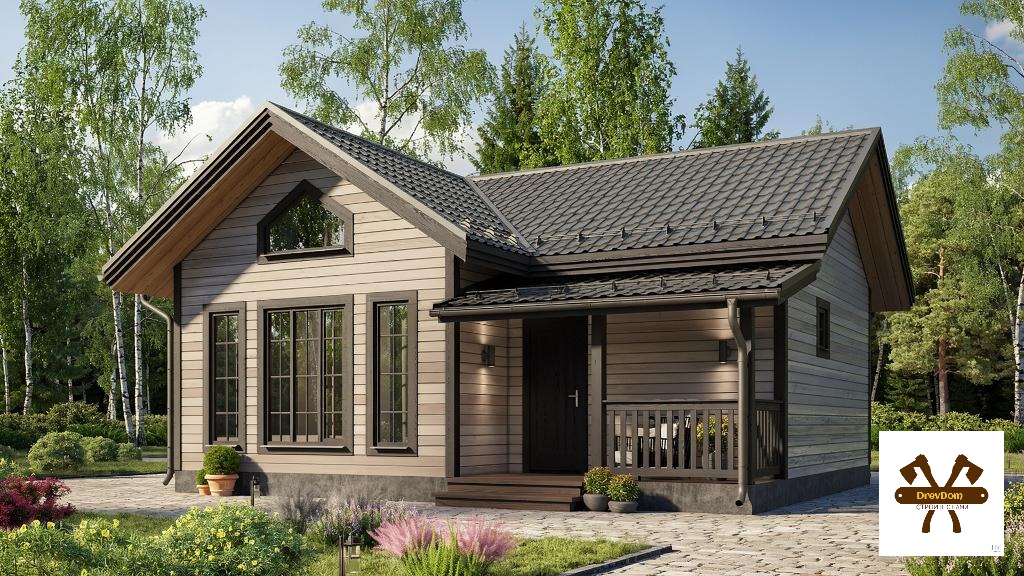 При наличии подъема стен второго этажа, выполнены из бруса. На мансардном этаже фронтоны - имитация бруса;