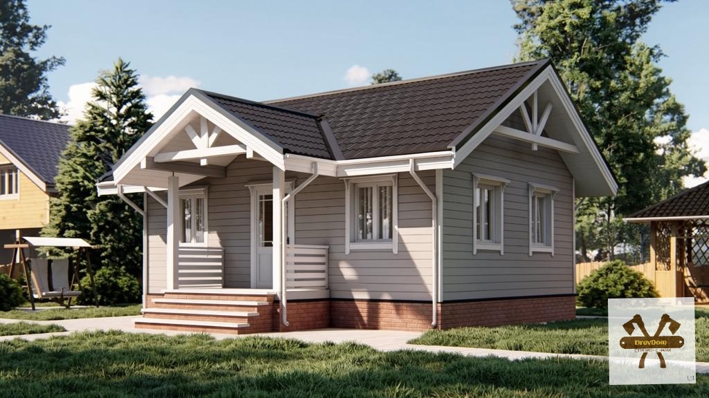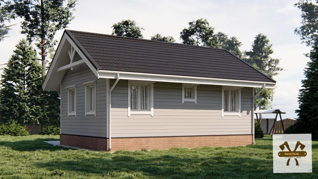 При наличии подъема стен второго этажа, выполнены из бруса. На мансардном этаже фронтоны - имитация бруса;