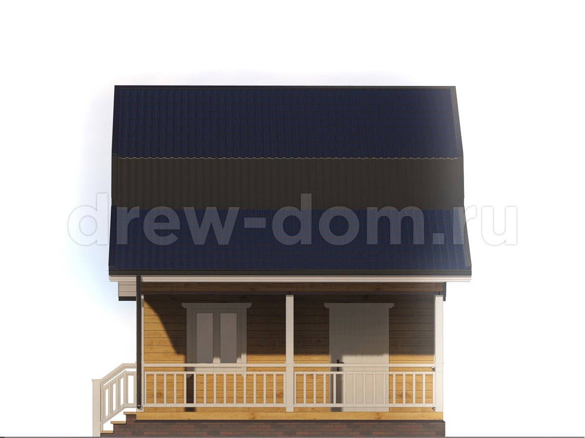 При наличии подъема стен второго этажа, выполнены из бруса. На мансардном этаже фронтоны - имитация бруса;