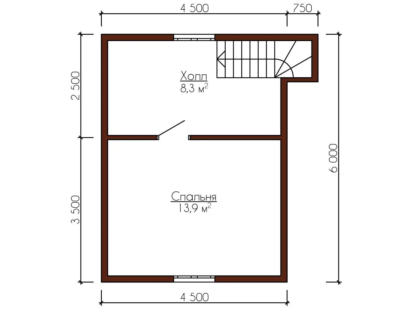 Из бруса 150х100мм., Профилированный брус 145х90мм. Перегородки на мансардном этаже каркасные и делаются на втором этапе строительства. Перегородки второго этажа – несущие, делаются на полутораэтажном и двухэтажном доме брус 150х100мм. Профилированный 145х90мм. (возможно все перегородки сделать из бруса по желанию заказчика)
