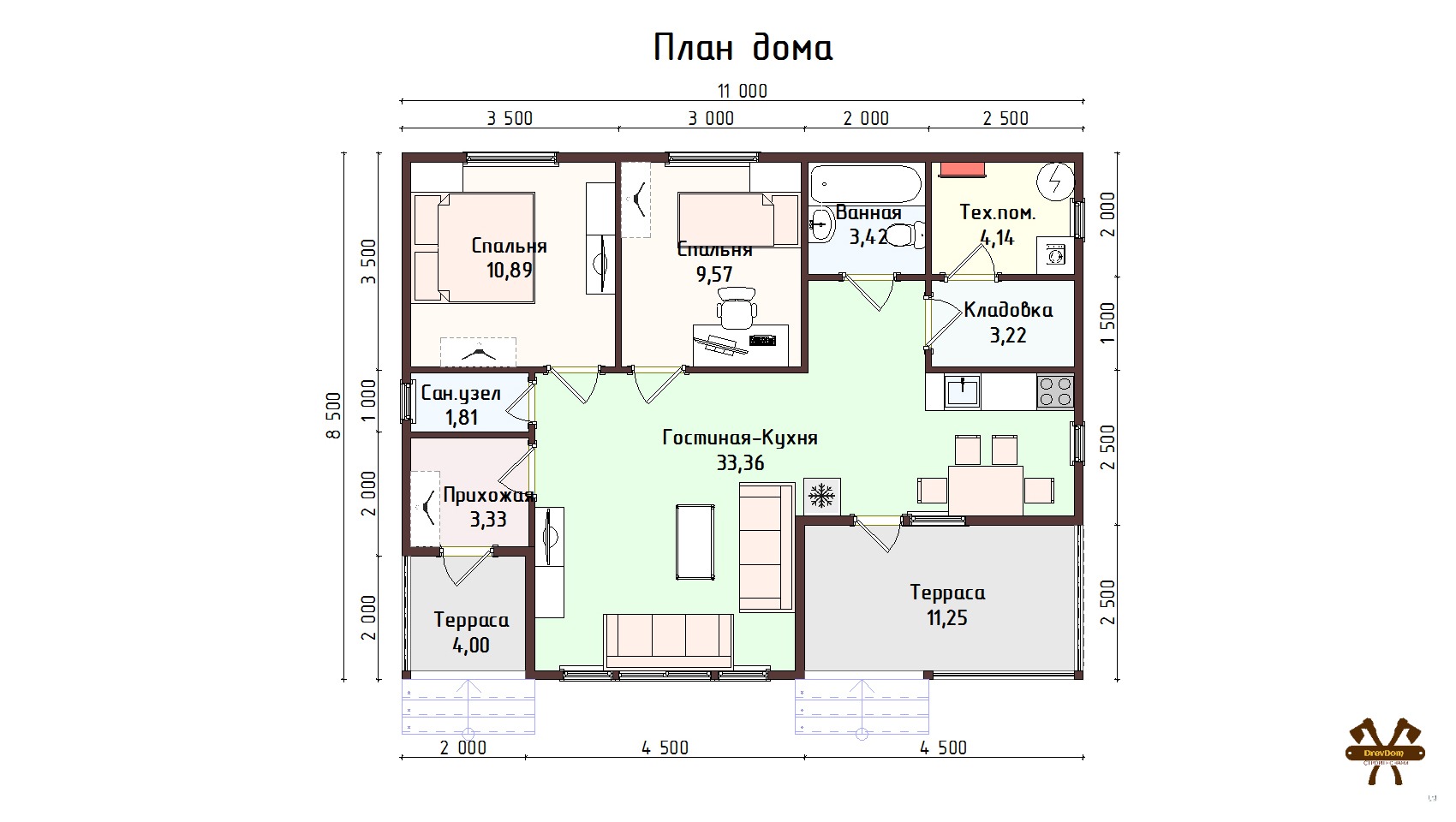 Не входит в стоимость дома, рассчитывается отдельно, в зависимости от грунта и пожеланий Заказчика.