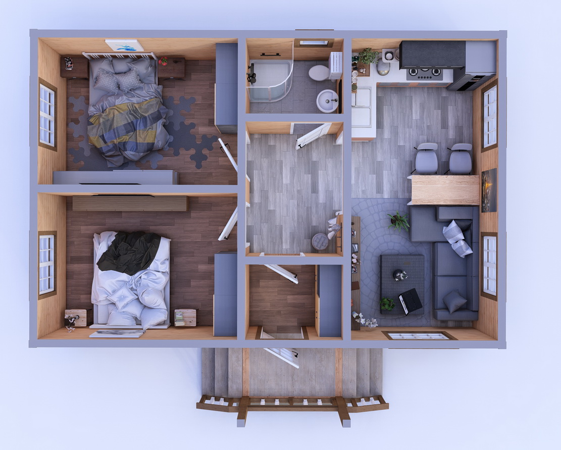 Так же необходимо обеспечить условия для проживания бригады из двух или трех человек, за это отвечает Заказчик. Наша компания может помочь в выполнении данной задачи, предоставив бытовку 2х3 метра, которая после окончания строительства остается на участке. В дальнейшем её, как правило, используют как подсобное помещение.