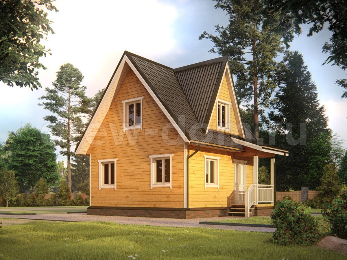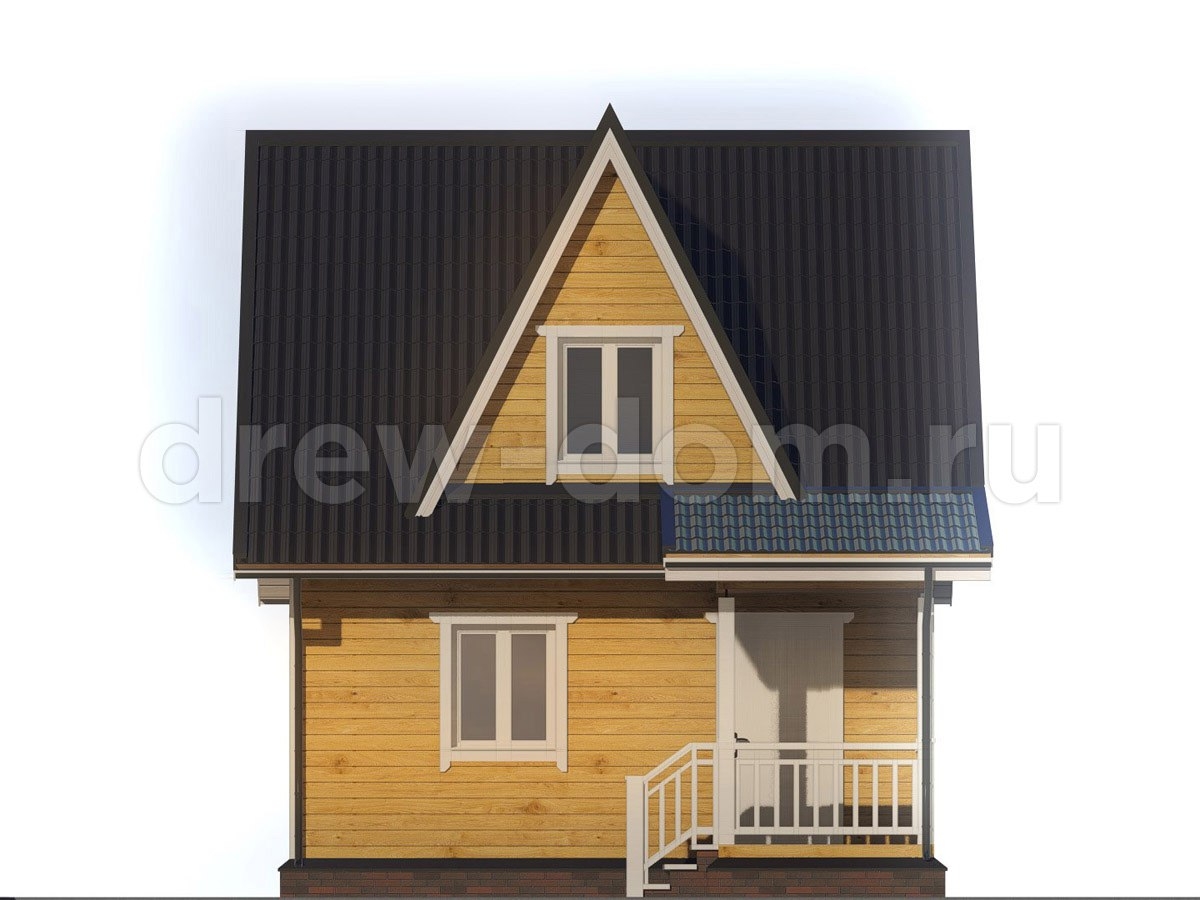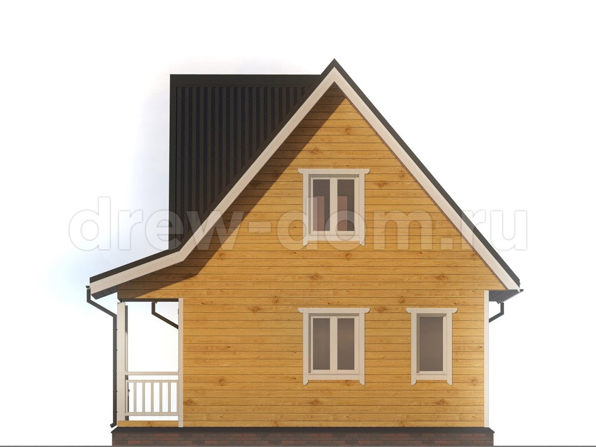 При наличии подъема стен второго этажа, выполнены из бруса. На мансардном этаже фронтоны - имитация бруса;