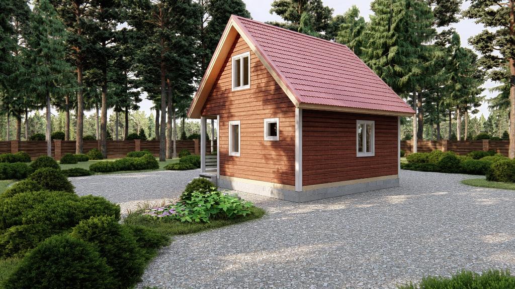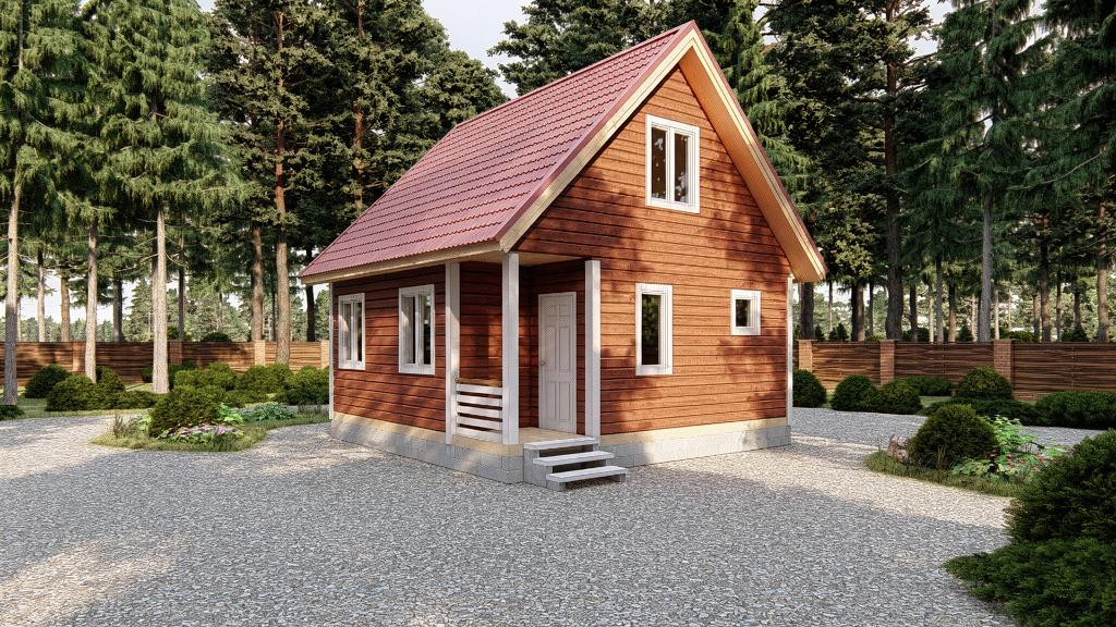 При наличии подъема стен второго этажа, выполнены из бруса. На мансардном этаже фронтоны - имитация бруса;